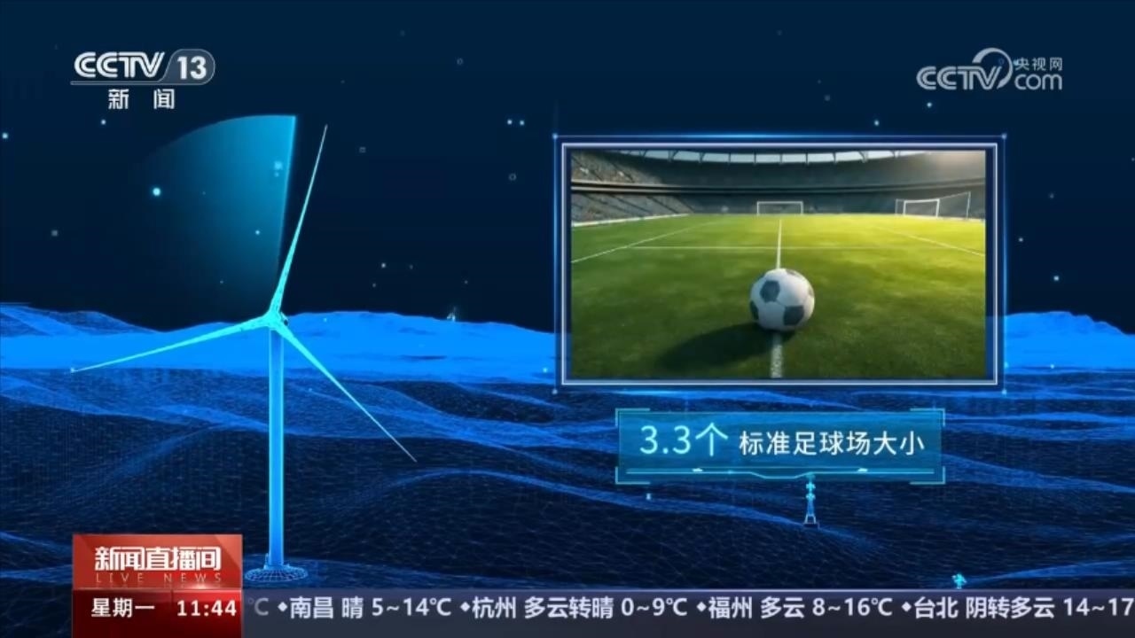 173米,是歐瑪亭嘎風(fēng)電場的風(fēng)機葉片直徑,其掃風(fēng)面積相當(dāng)3.3個標(biāo)準(zhǔn)足球場大小。