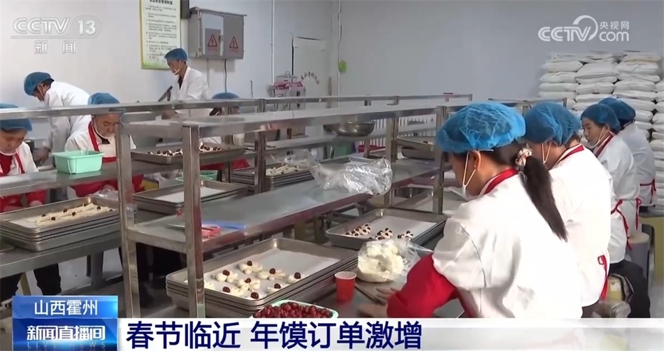 在山西霍州市的年饃加工廠里,制作年饃的師傅們異常忙碌。據了解,當?shù)胤昴赀^節(jié)都會有做年饃、買年饃、品年饃的民俗,隨著春節(jié)臨近,工廠的年饃需求量激增?;糁菔姓限r村集體經濟合作社資源,吸納全市12個鄉(xiāng)鎮(zhèn)的120余家加工實體加入,趕做訂單。