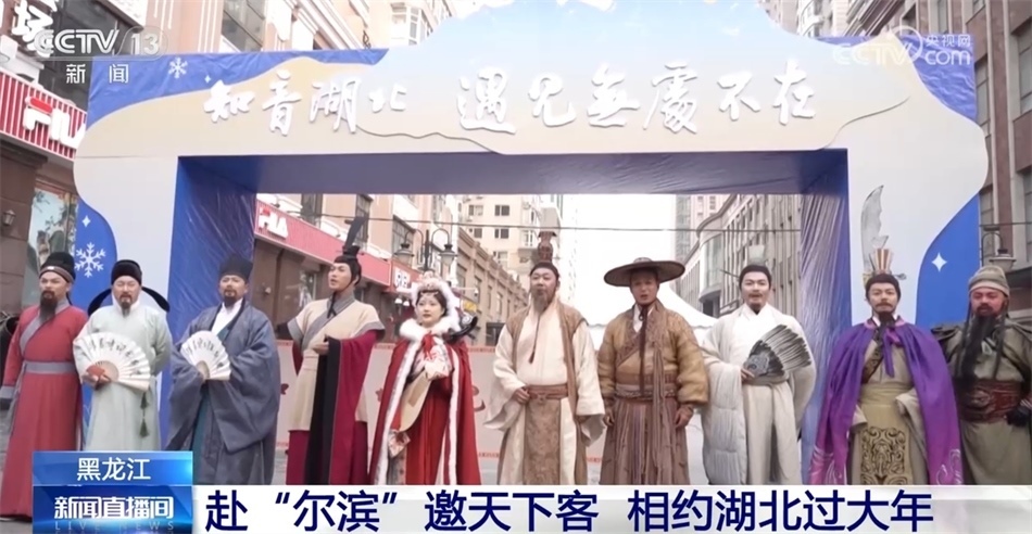 這些天,一群來(lái)自湖北的特殊游客抵達(dá)黑龍江哈爾濱,開(kāi)啟他們的冰雪之旅。他們是湖北省文化和旅游廳組織扮演的“歷史名人天團(tuán)”,既有屈原、伯牙子期等,也有李白、蘇東坡等曾在湖北留下著名詩(shī)篇的文人。他們?cè)谥醒氪蠼志凼?,“拼”?shī)詞展音律,傳遞傳統(tǒng)文化之美。在暢享北國(guó)風(fēng)光的同時(shí),也為游客們送上一場(chǎng)超級(jí)文旅秀和文旅大禮包,邀請(qǐng)全國(guó)游客“去湖北過(guò)大年”。