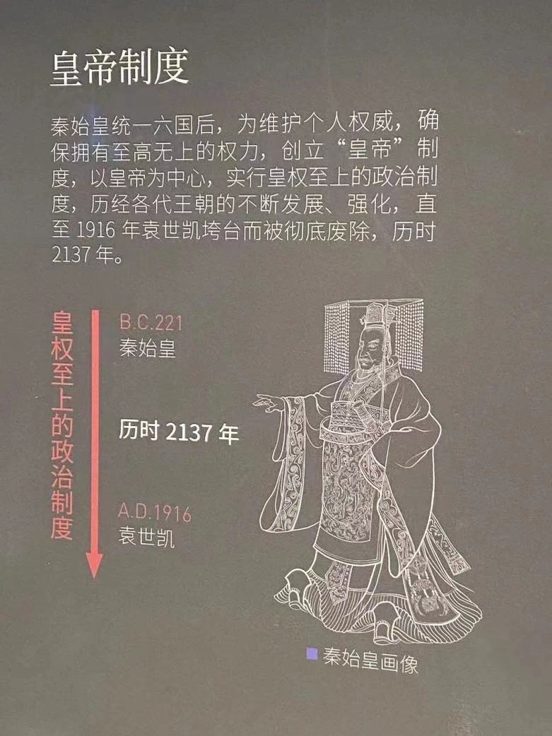 陜歷博秦漢館中的展板標(biāo)明皇帝制度結(jié)束于“袁世凱”。圖源:“今西安”微信公眾號