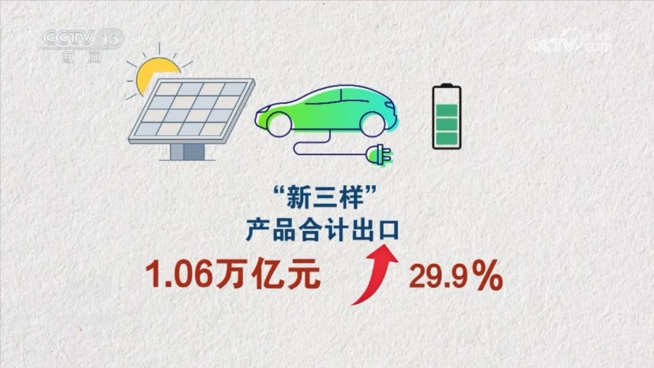 2023年,我國(guó)出口機(jī)電產(chǎn)品13.92萬(wàn)億元,增長(zhǎng)了2.9%,占出口總值的58.6%;同期勞動(dòng)密集型產(chǎn)品出口4.11萬(wàn)億元,占出口總值的17.3%。機(jī)電產(chǎn)品中,電動(dòng)載人汽車、鋰離子蓄電池及太陽(yáng)能電池“新三樣”產(chǎn)品合計(jì)出口1.06萬(wàn)億元,首次突破萬(wàn)億元大關(guān),增長(zhǎng)了29.9%。船舶、家用電器的出口分別增長(zhǎng)35.4%和9.9%。