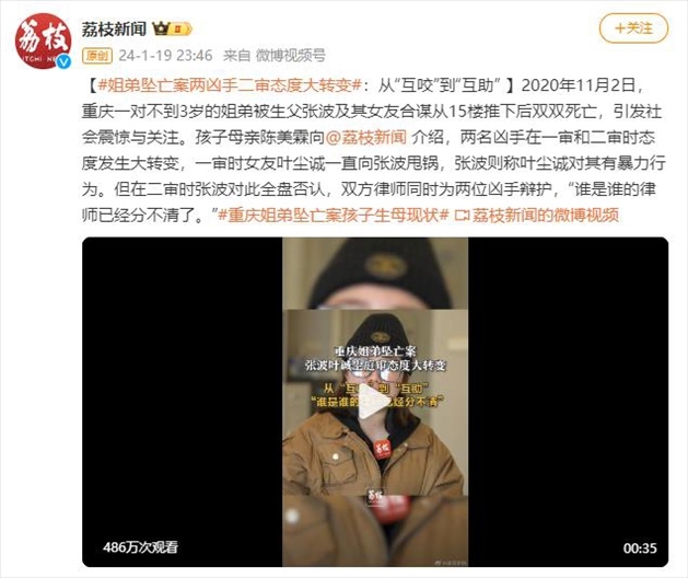 ·重慶姐弟墜亡案孩子母親陳美霖近日向媒體介紹,兩名兇手在一審和二審時態(tài)度發(fā)生大轉(zhuǎn)變,一審時女友葉塵誠一直向張波甩鍋,張波則稱葉塵誠對其有暴力行為。但在二審時張波對此全盤否認(rèn),雙方律師同時為兩位兇手辯護,“誰是誰的律師已經(jīng)分不清了?!?/p>