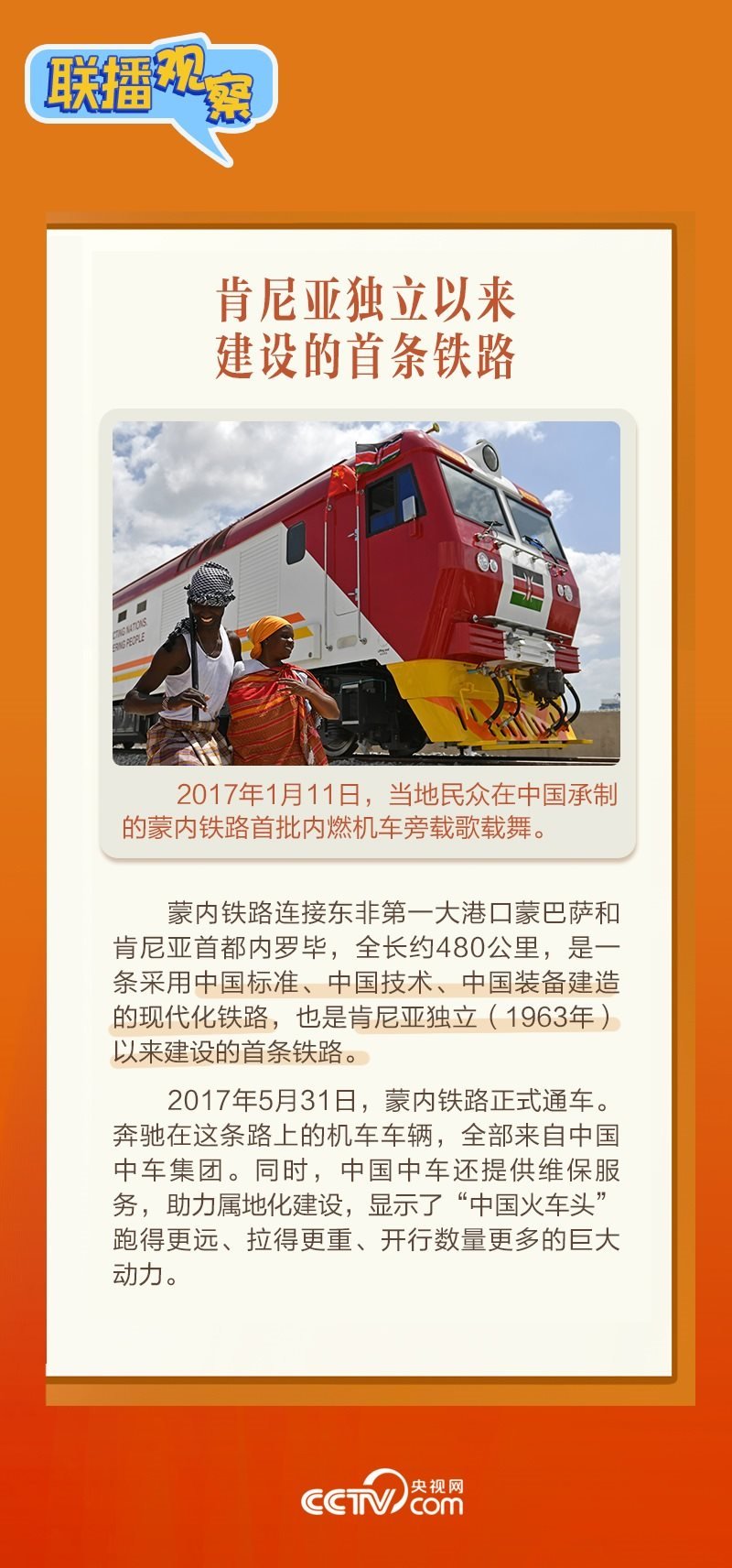 此前,習主席在外事活動中多次提及蒙內鐵路,《新聞聯播》也持續(xù)關注這條路的建設及開通后的運營情況。這條“幸福路”有何特別之處,習主席為何頻頻提及?它的建成通車給當地帶來哪些變化?《聯播觀察》邀您一同了解。
