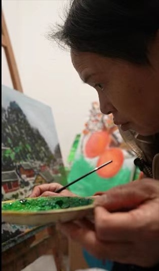 一支畫(huà)筆,一盒顏料,一張畫(huà)布,這幾乎是雙溪鎮(zhèn)能提供給王柳云的全部。那段時(shí)間,她走街串巷,畫(huà)山,畫(huà)水,畫(huà)民居,也“畫(huà)”心。憑著一種隱約的天賦和純天然的熱愛(ài),大概過(guò)了三個(gè)月,王柳云已經(jīng)能大批量地賣(mài)畫(huà)。