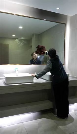 王柳云的保潔面積很大,整個(gè)寫(xiě)字樓的十五層和十七層,地板、桌椅、窗戶(hù)、衛(wèi)生間,都是她的職責(zé)范圍。“很多人一開(kāi)完會(huì),杯子、椅子、桌子要清理,還有窗子全部要擦干凈”,她形容自己的工作量“三四個(gè)人都干不完”,但她看中了這份工作留給她的一隅,隨便找個(gè)角落就可以寫(xiě)字畫(huà)畫(huà)。