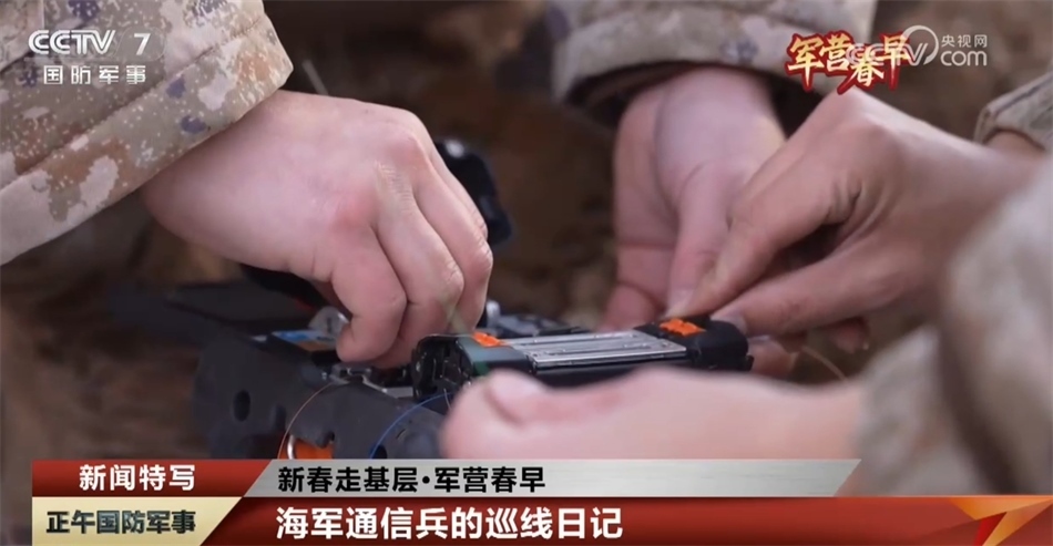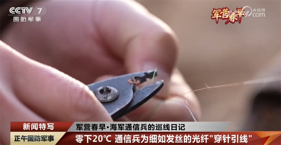 海軍某總站 鄭乾:因?yàn)楣饫w是玻璃材質(zhì)的,冬天特別寒冷,就會導(dǎo)致光纖特別容易斷裂,特別是在光纖切割刀切割光纖的時候,一不小心就會砸斷,有可能出現(xiàn)強(qiáng)行熔接的情況,一旦出現(xiàn)這種情況,任務(wù)就(可能)因?yàn)椋〝?shù)據(jù))無法使用,任務(wù)就會無法開展、失敗了。