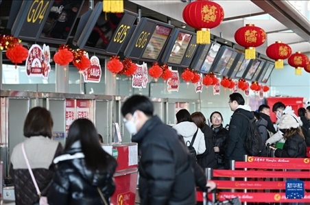 1月26日,旅客走進天府機場綜合交通換乘中心(GTC)天府機場高鐵站。新華社記者 江宏景 攝