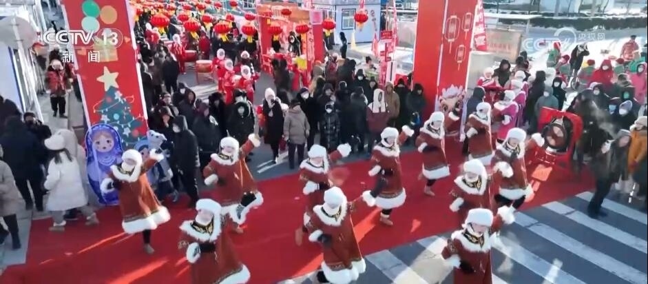 在黑龍江同江市的中俄年貨大集上,不僅有當?shù)靥厣膬鲷~、凍梨、凍柿子,還有俄羅斯的大列巴、巧克力等美食。逛吃的同時,現(xiàn)場還能欣賞各具特色的中俄文藝表演,讓趕集的人一飽眼福。