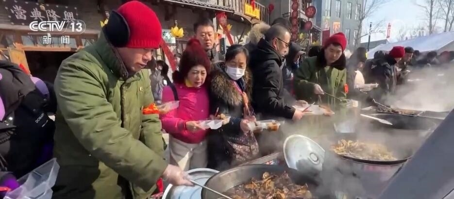 在吉林長春蓮花島年貨大集上,大家不僅可以逛大集買年貨,還能品嘗到東北特色美食鐵鍋燉的多種吃法。冰天雪地中品嘗熱氣騰騰的鐵鍋燉是怎樣一種感受?我們跟隨總臺記者王亞平一起去現(xiàn)場看看。