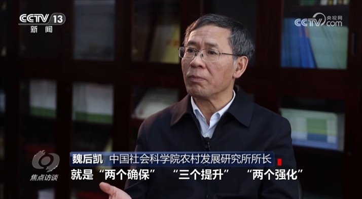 魏后凱:“今年‘三農(nóng)’工作的重要任務(wù)是‘兩個(gè)確?!齻€(gè)提升’‘兩個(gè)強(qiáng)化’?!畠蓚€(gè)確保’是底線任務(wù),要確保國(guó)家糧食安全,確保不發(fā)生規(guī)模性返貧?!齻€(gè)提升’,提升鄉(xiāng)村產(chǎn)業(yè)發(fā)展水平,提升鄉(xiāng)村建設(shè)水平,提升鄉(xiāng)村治理水平?!畠蓚€(gè)強(qiáng)化’,強(qiáng)化科技和改革的雙輪驅(qū)動(dòng),強(qiáng)化農(nóng)民增收的舉措。”