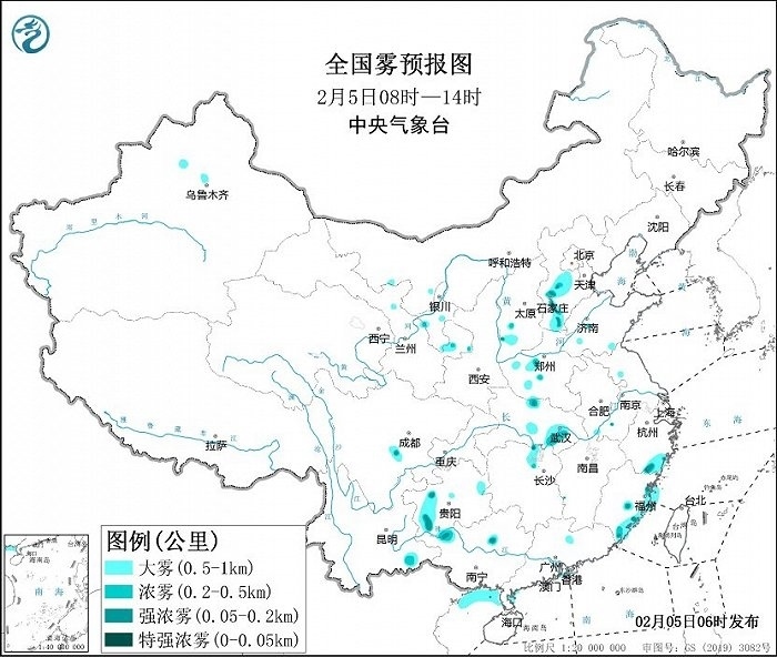 預(yù)計(jì),5日早晨至上午,雷州半島沿岸海域、粵西沿岸海域、北部灣偏北海域、福建沿岸的部分海域?qū)⒂写箪F,能見(jiàn)度不足1公里。此外,河北西部、山西西南部、河南南部、湖北中東部、浙江東南部、福建東部、貴州西部等地有大霧天氣,局地有能見(jiàn)度不足200米的強(qiáng)濃霧。