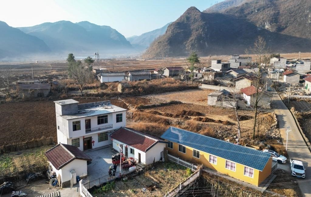 這是巴木玉布木位于越西縣板橋鎮(zhèn)桃園村的家(2月2日攝,無人機照片)。新華社記者 王曦 攝