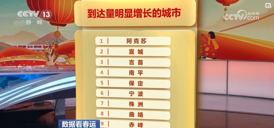 在2月7日的春運熱力圖上,最熱門的城市變化不大,根據(jù)12306的票務(wù)數(shù)據(jù),預(yù)計2月7日將有48個城市的到達(dá)人次出現(xiàn)明顯增長。
