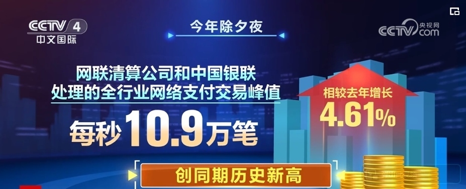 中國人民銀行最新數(shù)據(jù)顯示,2024年除夕夜,伴隨著零點鐘聲的敲響,網(wǎng)聯(lián)清算公司和中國銀聯(lián)處理的全行業(yè)網(wǎng)絡支付交易達到峰值,最高并發(fā)量為每秒10.9萬筆,相較2023年增長4.61%,創(chuàng)同期歷史新高。