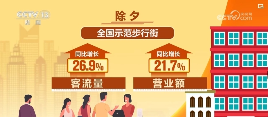 據(jù)商務部大數(shù)據(jù)監(jiān)測,2024年除夕,部分重點大型超市即時零售銷售額同比增長約20%。除夕當天,重點電商平臺在線餐飲銷售額同比增長40.8%,全國示范步行街客流量、營業(yè)額同比分別增長26.9%和21.7%。