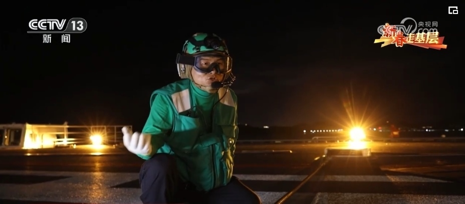 引導(dǎo)員唐曉菁的工作是負(fù)責(zé)引導(dǎo)艦載機(jī)就位、起飛。由于甲板上設(shè)備眾多,她的一舉一動都至關(guān)重要,戰(zhàn)機(jī)起飛時(shí),她的戰(zhàn)位距離飛機(jī)發(fā)動機(jī)只有不到20米。