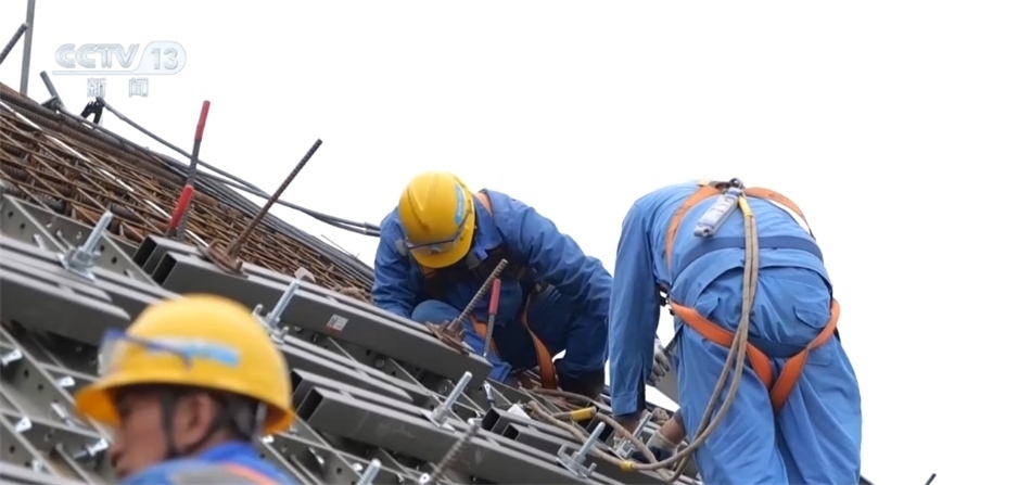 總臺央視記者 吳天白:在“華龍一號”太平嶺1號機組的最高點穹頂,我們可以看到幾十位工作人員正在加緊施工,他們今天的主要工作是對已經完成安裝的穹頂鋼筋進行檢查驗收?,F場工作人員告訴我,別看穹頂面積有5個籃球場這么大,他們的工作都是以毫米為單位的精細活。