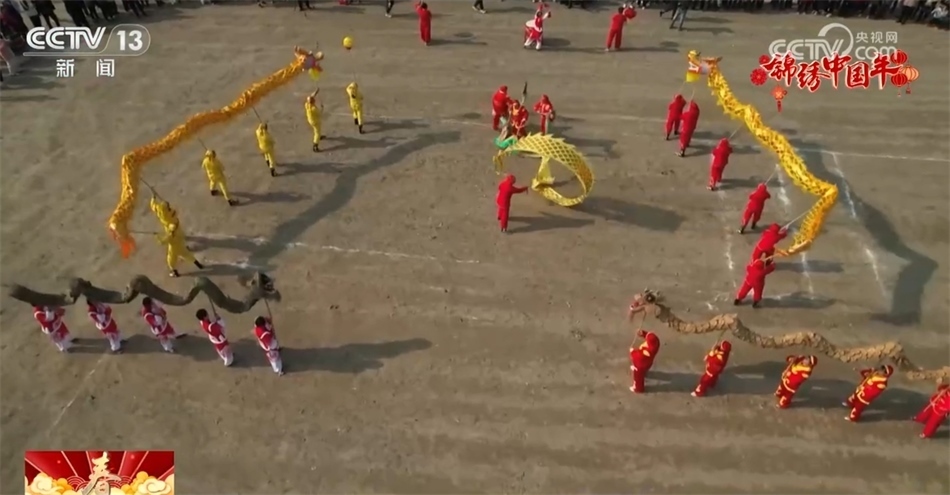 在射洪洋溪鎮(zhèn)水洲壩村,陣陣鼓樂聲中,當?shù)匚椠垈鞒姓呶柚鴥蓷l草龍在廣場內(nèi)來回穿梭,時而騰空疾飛,時而逶迤蛇行,吸引眾多游客駐足觀看。
