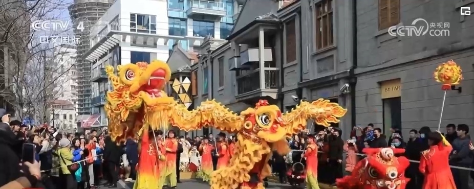 在上海的大街小巷,舞龍舞獅、光影秀等各類新春活動陸續(xù)登場,讓市民游客感受龍年的歡騰圖景。一大早,隨著鑼鼓聲激昂開場,一條金龍和兩頭活潑的醒獅在上海市茂名北路威武亮相。龍獅團(tuán)成員們舞動一條長約30米的巨龍?jiān)诮质猩洗┧笥巫撸瞬簧偈忻裼慰婉v足觀看。
