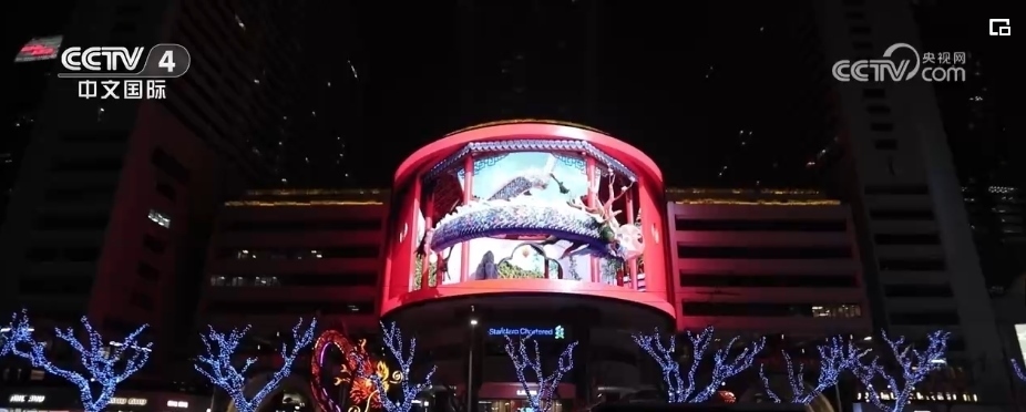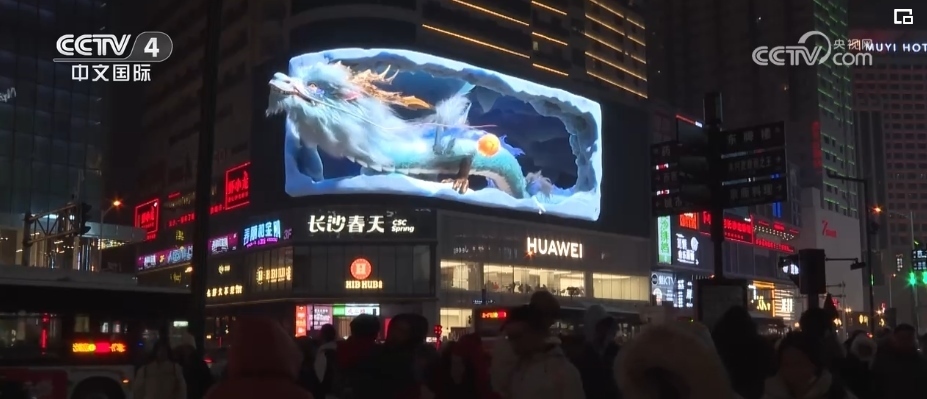 隨著夜幕降臨,在上海市南京西路這家商場戶外大屏,在裸眼3D技術(shù)的加持下,一條靈動時(shí)尚的“光影巨龍”騰飛而出。同時(shí),上海南京西路商圈的多個(gè)地標(biāo)建筑,也開啟了春節(jié)燈光演繹。