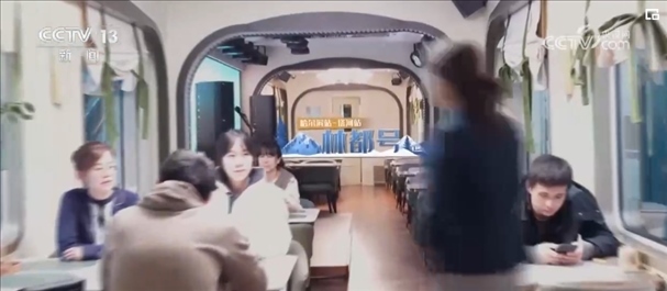 就在記者采訪時(shí),列車員邀請(qǐng)大家去一號(hào)車廂參加一個(gè)聯(lián)歡會(huì)。春節(jié)爆滿的車廂,讓他們也感受到了濃濃的年味兒。