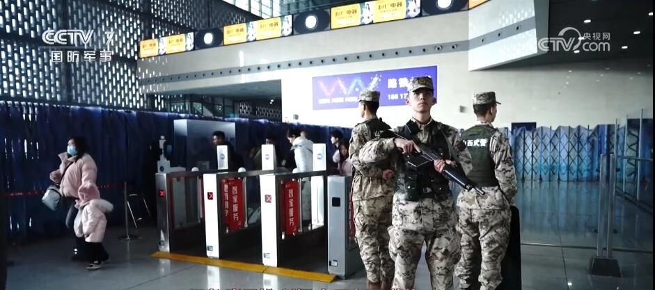 在四川西昌,武警四川總隊涼山支隊官兵加強火車站各站點執(zhí)勤巡邏,采用定點警戒與武裝巡邏相結合的方式,在入站口、候車室等區(qū)域疏導擁堵人群、維護現(xiàn)場秩序。此外,官兵還在售票廳、自動售票機和候車大廳提供購票引導、路線指引、安全提醒等服務,讓旅客出行更加便捷。