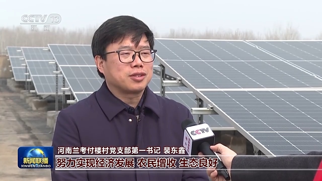 河南蘭考付樓村黨支部第一書記 裴東鑫:習近平總書記要我們在綠色發(fā)展中,努力實現(xiàn)經(jīng)濟發(fā)展、農(nóng)民增收、生態(tài)良好。我們大力實施了整個村莊的零碳化改造?,F(xiàn)在我們?nèi)迥旯夥l(fā)電量超過120萬度,完全滿足我們整個村子的用電需求,我們村集體一年增收十幾萬元。
