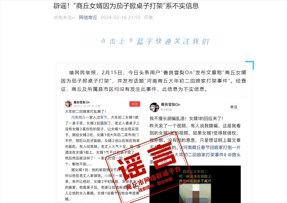 ·官方辟謠女婿因買茄子掀桌打架:不實(shí)信息,公安部門正在采取措施。