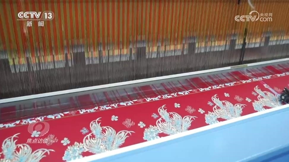 張明強(qiáng):“大提花的機(jī)器原來可以做窗簾,但同時(shí)也可以做馬面裙面料,也可以做服裝面料,就是同一臺機(jī)器可以做,所以我們這次轉(zhuǎn)型是不需要買機(jī)器的,它的成本就會比較低了?!?/p>
