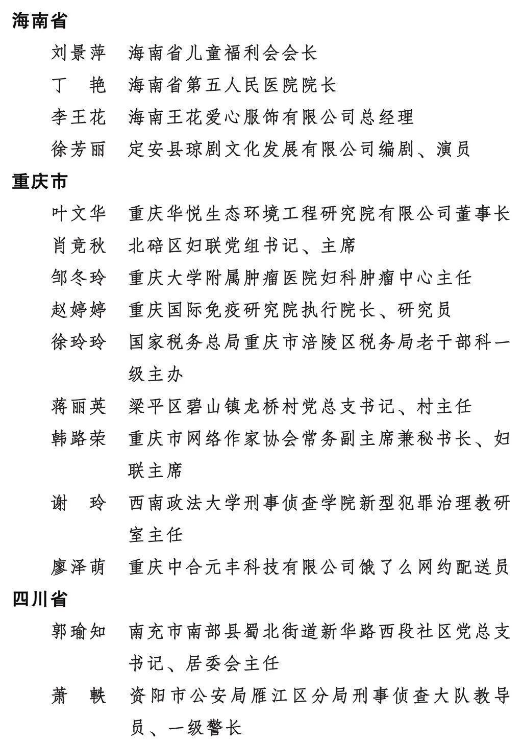 2023年度全國三八紅旗手標兵、全國三八紅旗手、全國三八紅旗集體全名單公布