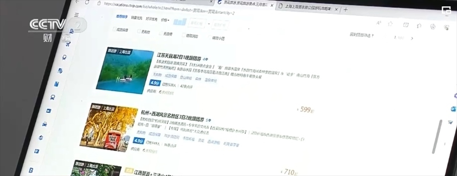 記者在某旅游平臺官網(wǎng)首頁搜索發(fā)現(xiàn),不少旅游產(chǎn)品都打上了“踏青賞花”“賞花特惠”等標簽。無論是短途一日游,還是長線賞花游,銷量都十分可觀。
