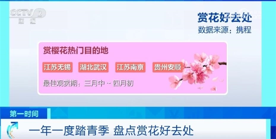根據(jù)花的類別,旅游平臺推出了最具人氣的前四名賞花目的地,其中賞櫻花熱門目的地有江蘇無錫、湖北武漢、江蘇南京、貴州安順。