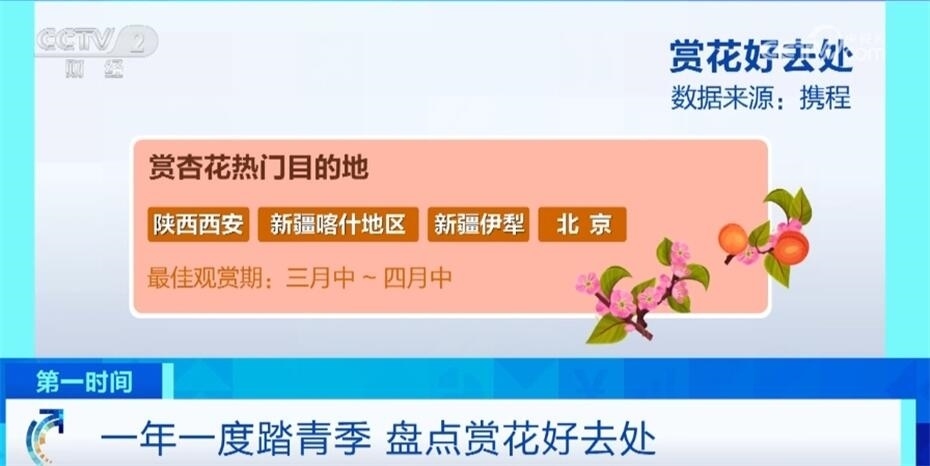 春日游,杏花吹滿頭。陜西西安、新疆喀什地區(qū)、新疆伊犁、北京是賞杏花的熱門目的地。