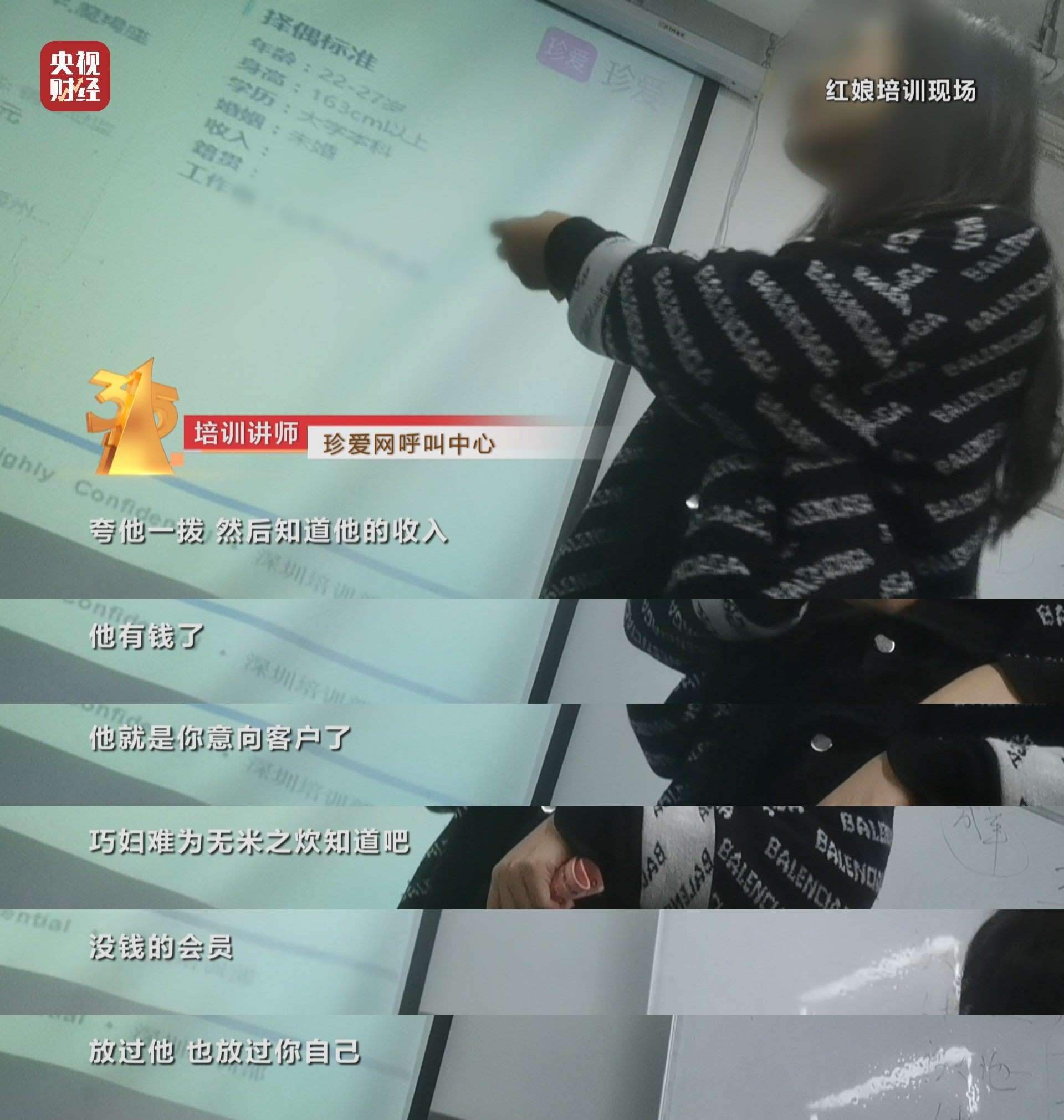 “虛擬人”誘餌如果吸引了客戶,就完成銷售的“第一步”。接下來的話術(shù),表面上是核實(shí)客戶資料,講師們要求紅娘的其實(shí)是篩選客戶有沒有錢。