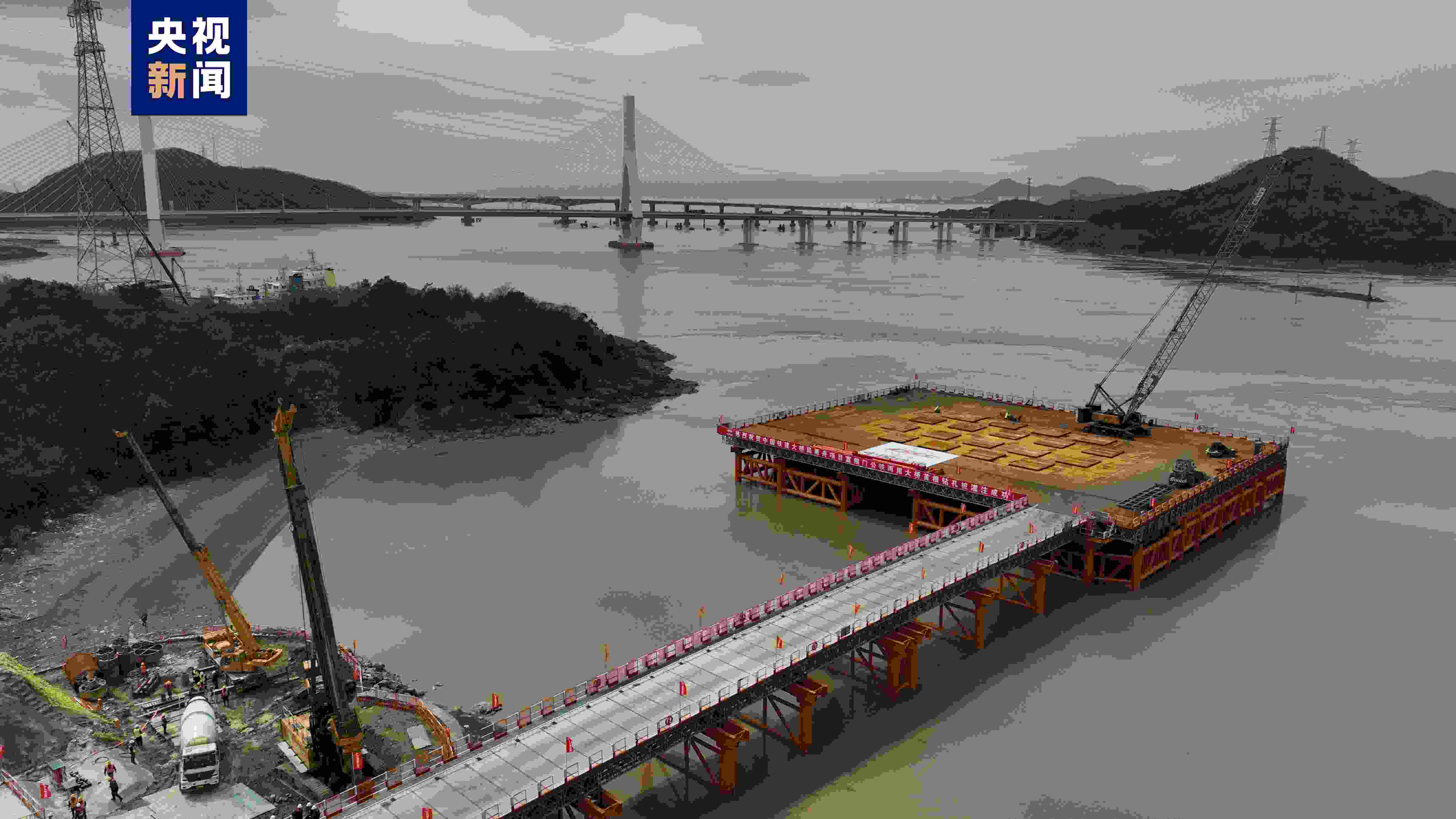在舟山響礁門山咀區(qū)域,隨著最后一方混凝土灌入樁長10米,樁徑2米的鉆孔樁中,甬舟鐵路富翅門公鐵兩用大橋首根樁基灌注完成,計(jì)劃于今年完成全橋樁基礎(chǔ)施工。