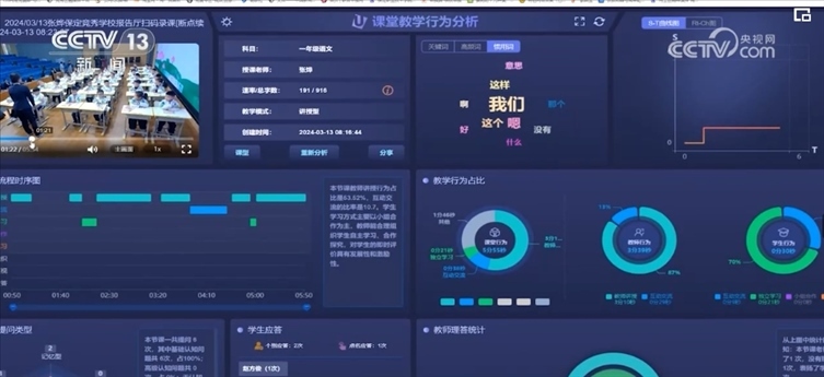 在河北保定競秀學(xué)校,一套新引進(jìn)的智慧教學(xué)研一體化系統(tǒng)正在推行。教室里,兩臺(tái)智能攝像機(jī)對(duì)課堂情況進(jìn)行視頻采集,包括高頻詞、師生互動(dòng)、講課語速等元素,通過AI技術(shù)生成課堂大數(shù)據(jù)分析報(bào)告,對(duì)于改進(jìn)教學(xué)方法起到意想不到的效果。