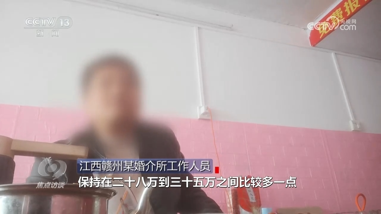江西贛州某婚介所工作人員:“我們這邊彩禮有點偏貴,保持在二十八萬到三十五萬之間,最多的彩禮三十八萬。”