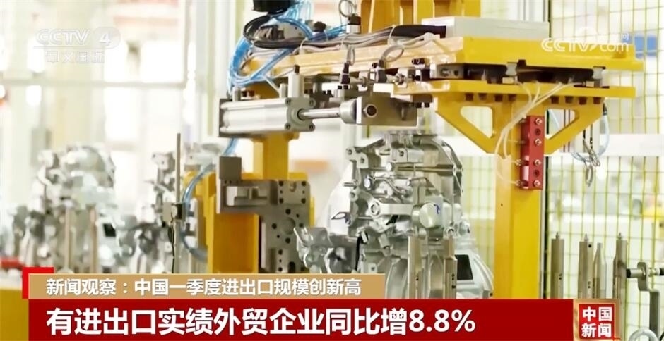 今年一季度,中國貨物貿(mào)易進(jìn)出口總值10.17萬億元,同比增長5%。其中,出口5.74萬億元,增長4.9%;進(jìn)口4.43萬億元,增長5%。進(jìn)出口增速創(chuàng)6個(gè)季度以來新高。