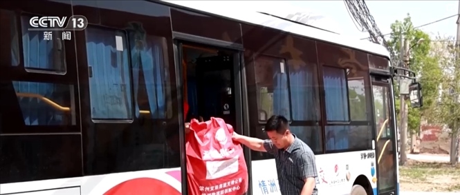在專門定制的客貨郵公交車上,除了快遞包裹,還有一些團(tuán)購(gòu)的生活物資。司機(jī)介紹,因?yàn)榇謇锢先司佣?,到?zhèn)上買東西不方便,手機(jī)團(tuán)購(gòu)生活物資后,公交車就會(huì)一起帶到各村的集士驛站。