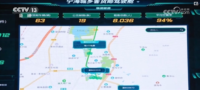 當(dāng)這些打包好的快遞包裹袋上車后,公交車上的大屏幕內(nèi)置讀卡器感應(yīng)到包裹袋上的二維碼,遠(yuǎn)在32公里之外的寧??拓涏]智控管理中心內(nèi),包裹實(shí)時(shí)信息和公交車運(yùn)行軌跡都出現(xiàn)在了大屏幕上。
