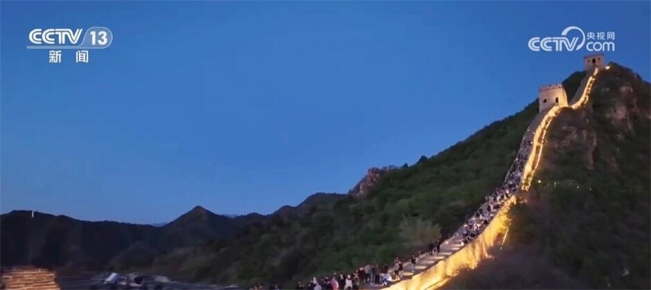 在密云,司馬臺(tái)長(zhǎng)城也在夜間被“點(diǎn)亮”,如火龍般在山間蜿蜒。游客可以提燈夜游,感受古長(zhǎng)城的磅礴氣勢(shì),也能泛舟河面,遠(yuǎn)望山巒朦朧,近觀燈火輝煌。景區(qū)還推出音樂(lè)、舞蹈、詩(shī)歌和繪畫(huà)相結(jié)合的演出活動(dòng),無(wú)人機(jī)在夜空中的飛行表演也給市民游客帶來(lái)了震撼的視聽(tīng)享受。