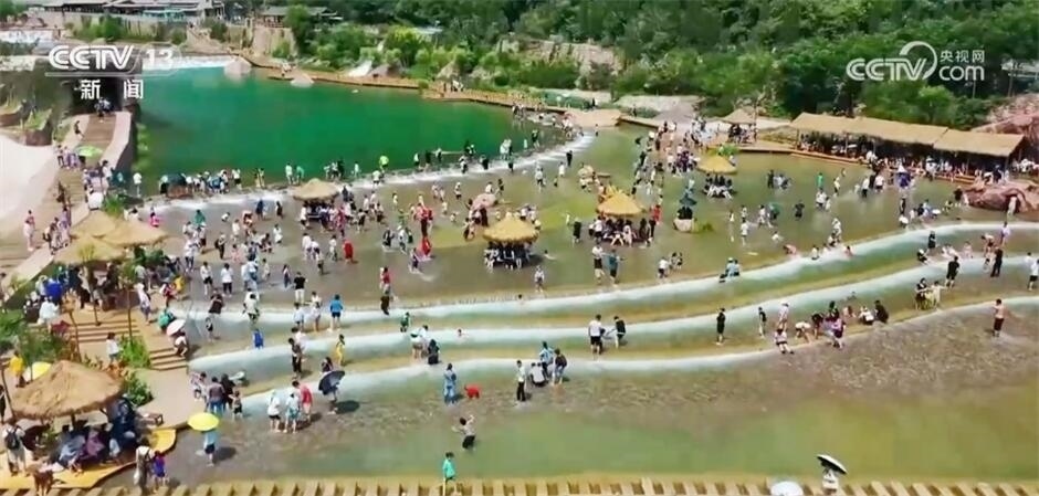 隨著氣溫漸高,越來(lái)越多的游客選擇走進(jìn)峽谷,擼起褲管、光著腳丫走進(jìn)淺灘中,搶先感受夏日清涼。在這里不僅能淺灘戲水,更能與落差近400米的飛瀑合影。大自然的鬼斧神工加上景區(qū)的創(chuàng)新舉措,為當(dāng)?shù)芈糜螛I(yè)注入了新的活力,帶動(dòng)了新一輪的消費(fèi)熱潮。