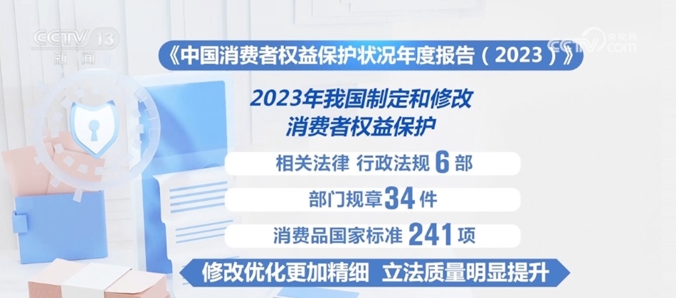 年度報告顯示,2023年我國制定和修改了消費者權益保護相關法律、行政法規(guī)6部、部門規(guī)章34件、消費品國家標準241項,修改優(yōu)化更加精細,立法質(zhì)量明顯提升。