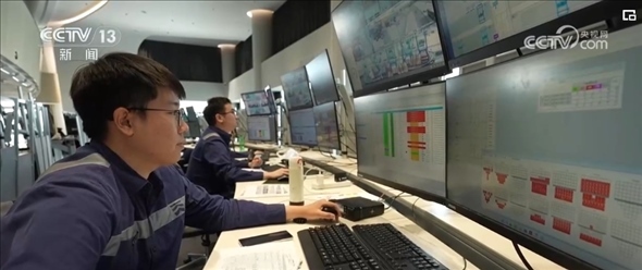 作為系統(tǒng)優(yōu)化師,范春奇全神貫注地盯著3個屏幕。左邊屏幕是碼頭調(diào)度指令,右邊是現(xiàn)場監(jiān)控的實時畫面,中間是智能水平運輸系統(tǒng),顯示著所有車輛的運行軌跡。