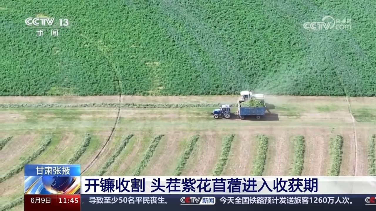 甘肅張掖:開(kāi)鐮收割 頭茬紫花苜蓿進(jìn)入收獲期