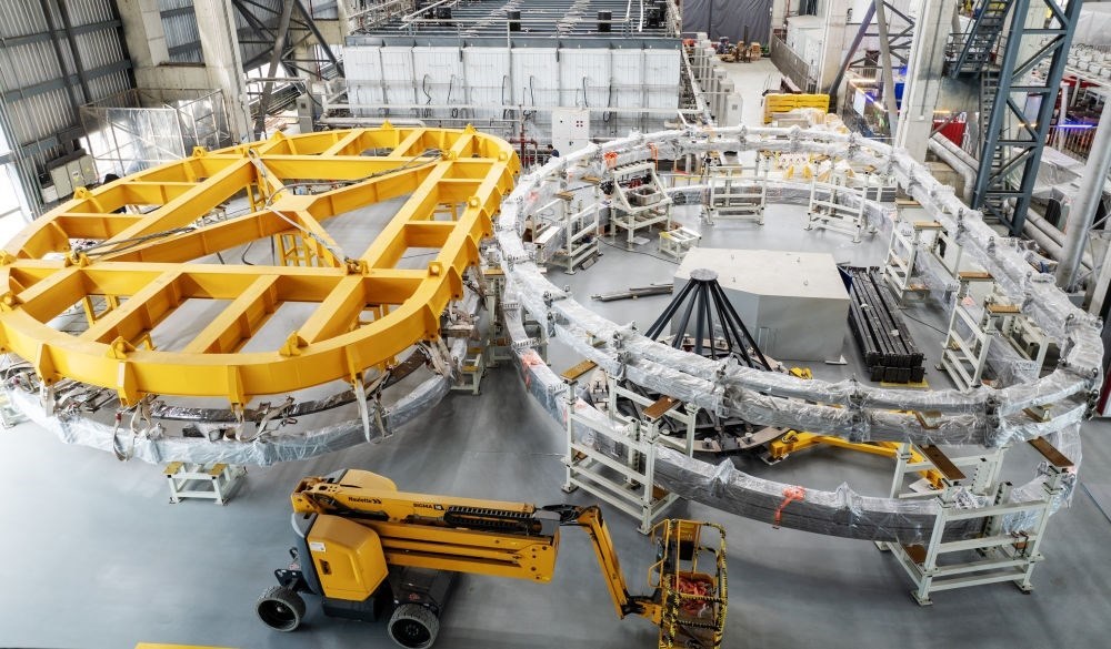 2024年5月27日在聚變堆主機(jī)關(guān)鍵系統(tǒng)綜合研究設(shè)施(CRAFT)園區(qū)內(nèi)拍攝的TF超導(dǎo)線圈生產(chǎn)線(無人機(jī)照片)。該研究設(shè)施將為未來中國(guó)聚變實(shí)驗(yàn)堆、工程堆的設(shè)計(jì)建設(shè),搭建參數(shù)高、性能全、功能完備的綜合性研究及測(cè)試平臺(tái)。