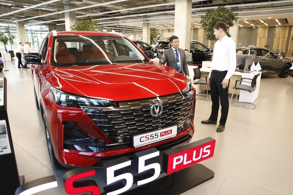 2024年6月24日,顧客在哈薩克斯坦阿斯塔納了解中國(guó)品牌汽車(chē)。新華社發(fā)(奧斯帕諾夫攝)