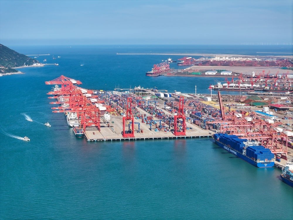 上合組織(連云港)國(guó)際物流園內(nèi)的集裝箱場(chǎng)站(2024年6月26日攝,無(wú)人機(jī)照片)。