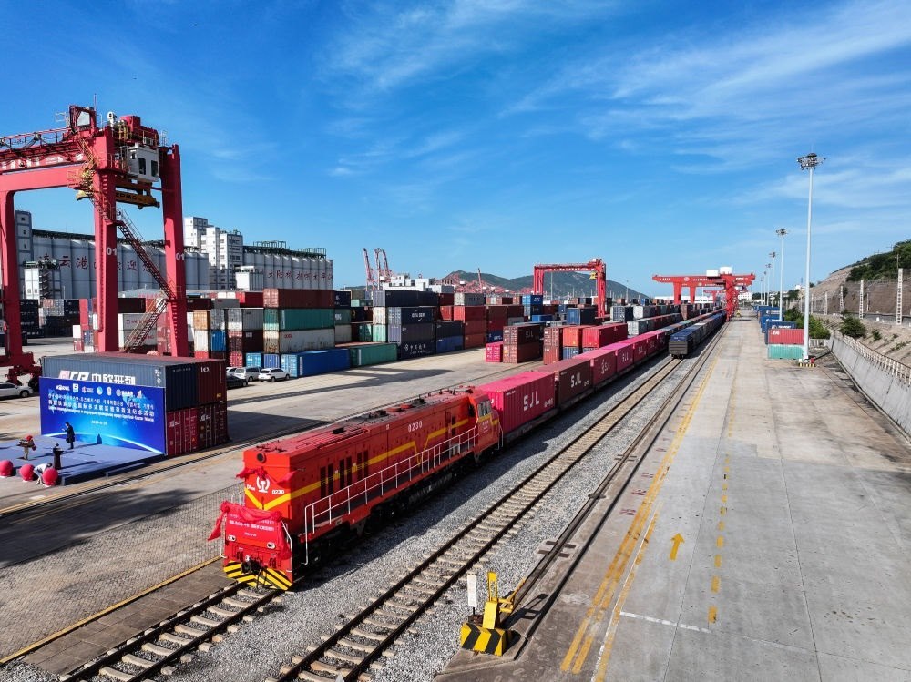 牽山連海,雙向奔赴?!颁撹F駝隊(duì)”在連云港和中亞地區(qū)之間往返穿梭,為東西交融、貿(mào)易暢通注入源源不斷的動(dòng)力。
