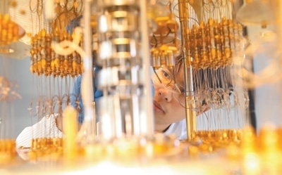 與時俱進全面深化改革 深圳國際量子研究院超導量子計算實驗室,實驗人員正在調試稀釋制冷機。楊浩翰攝(人民視覺)